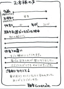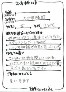 美容室ジラソーレにお越しいただいたお客様からのアンケートをご紹介いたしております。