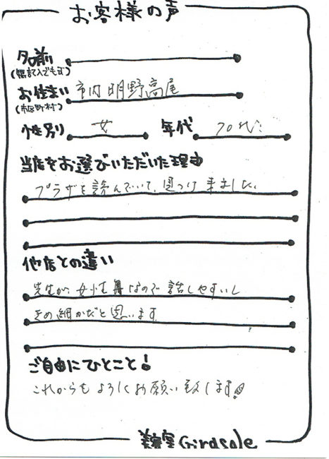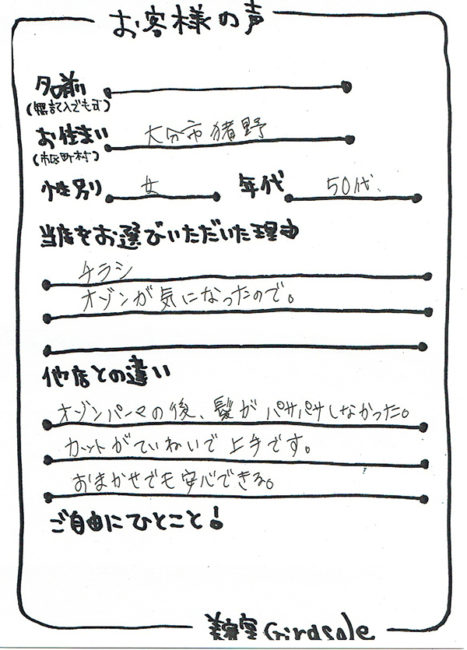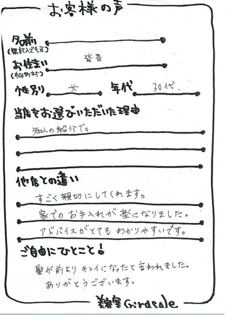 美容室ジラソーレにお越しいただいたお客様からのアンケートをご紹介いたしております。